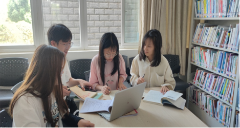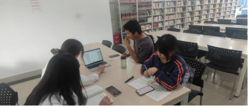 旅游管理专业同学查阅资料、讨论,进行线路设计