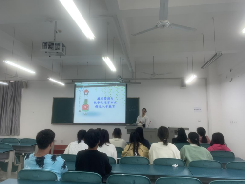 王静老师对本专业同学进行了关于专业课程设置、授课师资、就业岗位群等内容的介绍。通过此次讲座,让新生对自己的专业有了更深入的认识,并且明确了未来的努力方向和未来职业生涯的发展历程。为同学们今后的专业学习和未来发展增添了几许期待,也为我们今后的工作提供了更宽的思路。