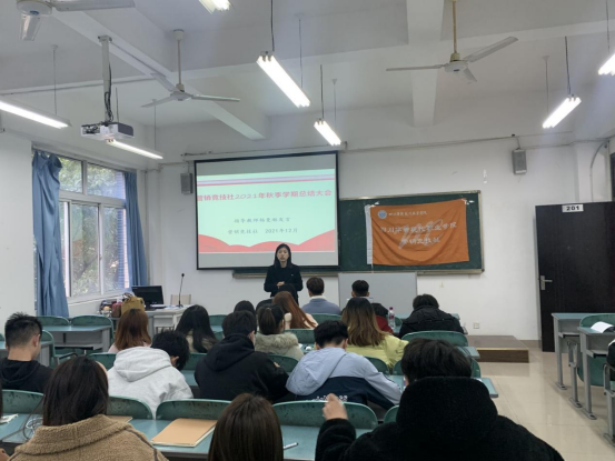 12月29日中午,营销竞技社在博学楼201教室召开本学期期末总结大会。