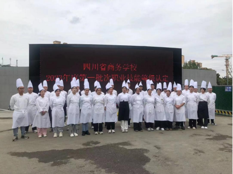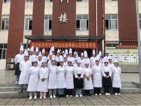 培训部周琦老师、苟萍老师,烹饪专业的唐铭浠老师、顾群老师带领40名学生前往四川省商务学校参加中式烹调师、西式面点师两个职业的技能等级认定考试,其中5人参加中式烹调师职业技能等级认定、35名同学参加西式面点师职业技能等级认定。
