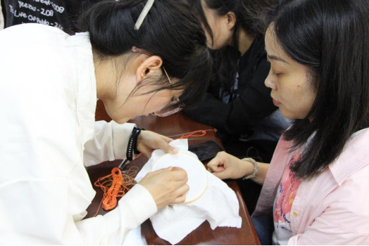 听完老师的讲解,学员们开始了自己动手实践,大家信心十足。通过这次活动让社区里的妇女真真切切地得到实惠,也使非遗产品能为年轻消费者所接受,迈出了探索文旅融合坚实的一步,也给刺绣传承注入生机与活力。