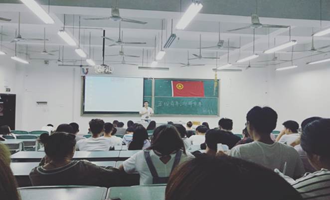2018年5月3日,在五四青年节来临之际,旅游系在教学楼111教室开展了 “迎五四 爱祖国”主题团课,团总支、学生会以及2017级全体同学参加了本次活动。