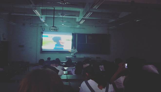 活动开始,同学们合唱了共青团团歌。接着全体同学共同观看了韩国“世越号”沉船100天纪录片、《辉煌中国》以及电影《战狼2》部分片段,对比之下同学们深受鼓舞,为中国的救援速度倍感震撼。观影结束后,同学们表示,记忆最深刻的就是“无论你在海外遇到了怎样的危险,请你记住,你的背后,有一个强大的祖国”,纷纷赞叹祖国的飞速发展和日益强大,让大家感受到身为一名中国公民的自豪感和幸福感。最后,全体同学在庄严的团旗下重温入团誓词,时刻提醒自己不忘初心跟党走。