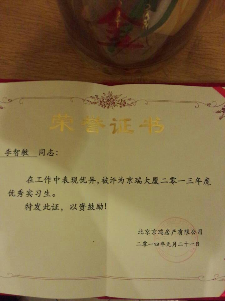 旅游系11级酒店管理专业的吴美娟、李智敏同学在北京首旅集团旗下的东方饭店、京瑞大厦实习期间,因表现优秀被酒店评为优秀实习生。