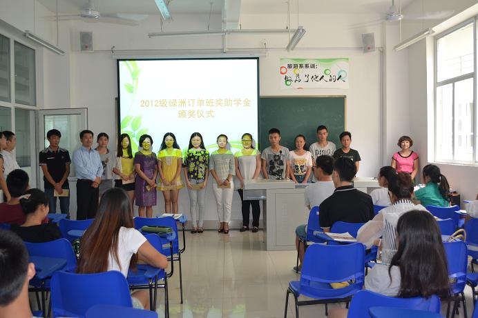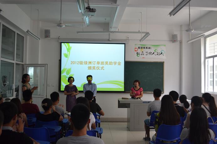 8月29日上午,我系与绿洲大酒店合作的“绿洲订单班”奖学金颁奖仪式在实训室举行。我院副院长康敏、绿洲大酒店人力资源经理贺川及旅游系部分教师参加了此次颁奖仪式。