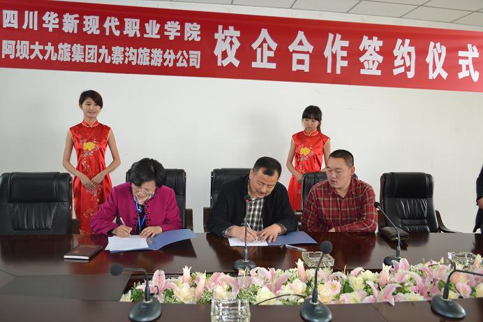 2013年3月21日上午旅游系与阿坝大九旅集团九寨沟旅游分公司签订校企合作协议。九寨沟旅游分公司的梁总、左经理、学院康敏副院长等出席了此次签约仪式。