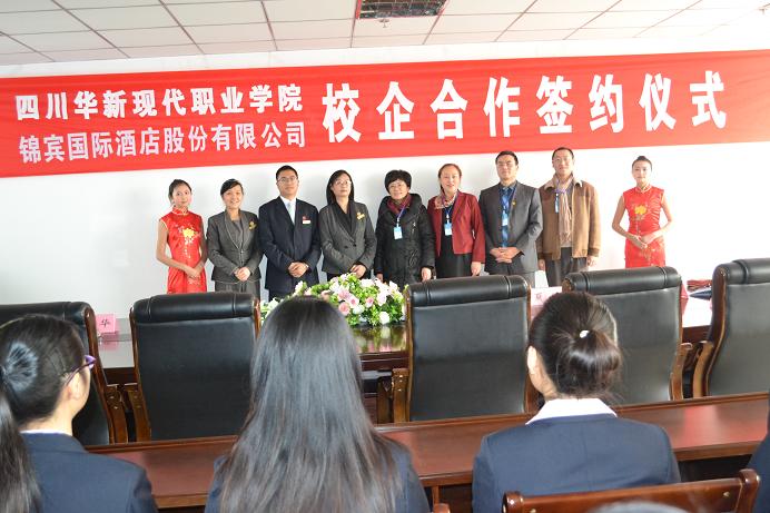 锦宾国际酒店股份有限公司人力资源部石红经理、钟华副总经理、四川华新现代职业学院康敏副院长、办公室主任陶军等中层领导出席了本次签约仪式。