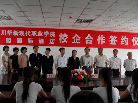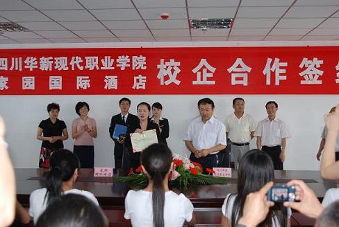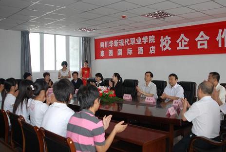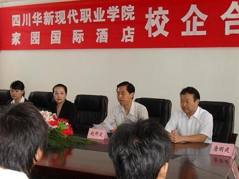 为进一步加强校企合作,发挥企业资源优势,培养社会需求人才,6月10日上午,四川华新现代职业学院与家园国际酒店校企合作培养人才签约仪式在我院623会议室举行。上午酒店副总经理袁惠一行抵达学院后,在院长李建川等人的陪同之下参观了景观大道,图书馆等地,随后抵达综合楼6楼接待室,就推进校企合作进行了交流之后,在签约地点623会议室就座。