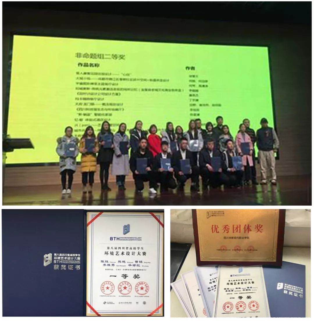 该系自成立以来,常年组织学生参加国内外各类展赛、已取得了许多重要成绩,获得各类奖项近百件。在2015年第六届全国广告艺术设计大赛中我院学生孙雅倩、杨倩、吴雨芯、杨飞等同学获得一等奖。2014年5月在四川省高校大学生环境艺术设计大赛中,我院获《优秀团体奖》,二等奖2名,三等奖4名,其他优秀奖4名。2013年12月,我系2010级残疾学生牟莎莎参加美国举办的2013年度“凤凰城姐妹城市残疾人艺术家国际艺术竞赛”展览,获二等奖。2017年四川省教育厅组织四川省大学生动漫原创大赛中,我系学生刘璐作品《武器》获得一等奖,唐毅、王学璐作品获得三等奖。2011年广告专业学生沙力墂在韩国仁川国际比赛中获得银奖(金奖空缺、奖金约合人民币12万元)。