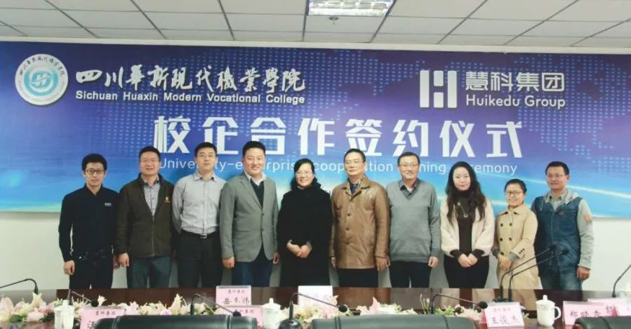 为响应国家互联网+战略,推进深层次校企合作,四川华新现代职业学院携手慧科集团,校企共建网络营销、移动商务、互联网金融专业。共建专业学生进校与慧科集团签订培养及就业协议,慧科集团通过自身连接产学的生态优势,整合百度、腾讯、钱袋宝、蚂蚁金服等行业领先企业资源,从培养体系、课程内容、教学实施、实习实训、创业就业等一系列过程融入产业需求,确保毕业生高质量就业。