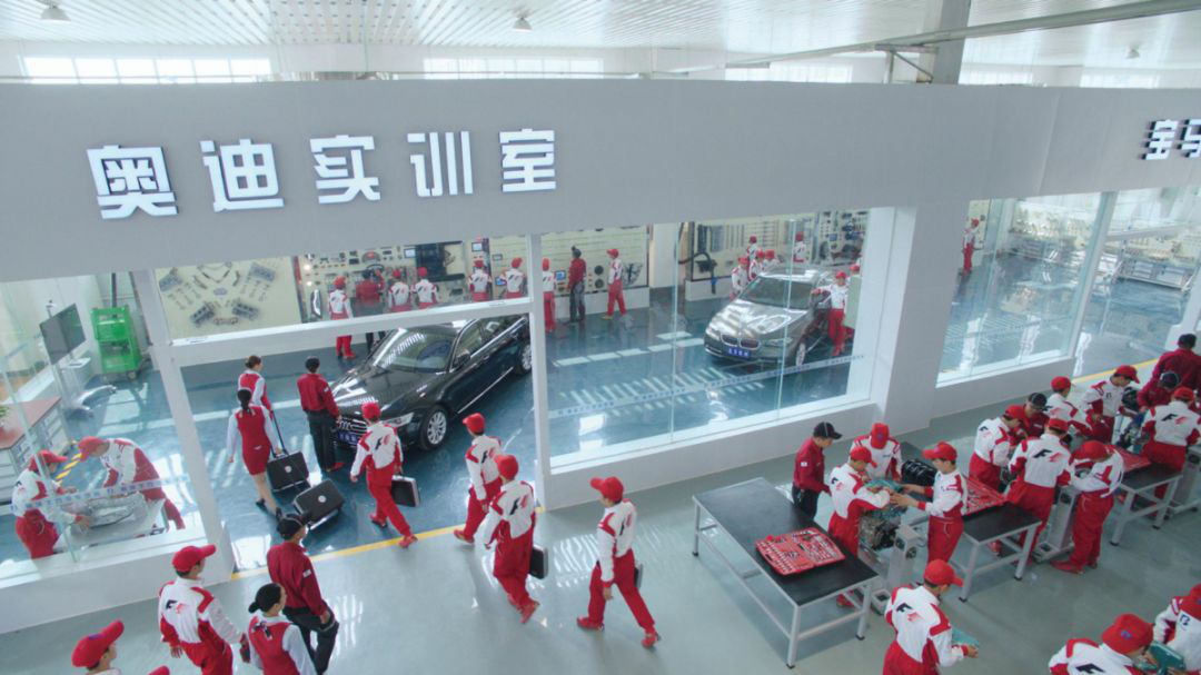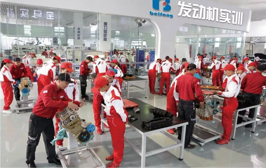 学院与中国北方汽车教育集团强强联合,建立四川华新现代职业学院北方汽车工程学院,双方采用校企专业共建模式,共同打造汽车类相关专业。依托北方汽车教育集团24年汽车教育领域专业教学经验,率先引进德国双元制教学模式,在实际教学过程中采用“三分理论,七分实践”的教学方法,总结出了“十变”的教学理论:校长变厂长、学校变市场、课堂变车间、老师变师傅、学生变徒弟、课桌变平台、课本变工具、黑板变图纸,招生变招工、学历变技能。学生毕业后定向往吉利集团、北汽集团等知名汽车制造厂或品牌4S店、专业快修美容店等安排就业。