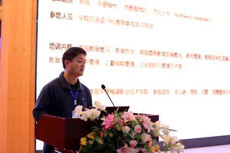 团组成员信息工程学院副院长邓先春首先介绍本次赴美培训团组的总体情况,并从出发与到达、课堂学习、访问学习、讨论与分享等四个方面总结了培训情况,分享了学习成果:关于美国高效组织的工作开展方式、课程设计方法、教学评价方法、以学生为中心的教学、高等教育教职工发展途径、校园管理、财务管理等内容,特别是在课堂教学方面要特别重视现代教育信息技术的应用,并就华盛顿湖职业技术学院校企合作谈了思考和认识。他强调时代在变,学生在变,教育也需要因时而变,因势而进,我们需要直面改变,了解学生,分类培养,促进学生的成长和进步。