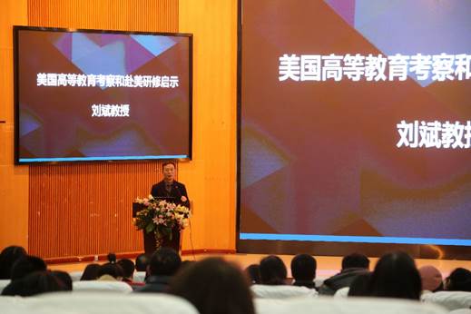 最后,副院长刘斌就美国高等教育考察和赴美研修启示分享了学习收获:充满生机与活力多样的课改教育模式;美国强烈的规则意识;重视以人为本的管理理念;重视教师参与管理;注重制度的完善与创新;健全的工资福利体系是吸引、留住人才的重要保证;准确的办学定位是高校得以生存与发展的重要基石;清晰的管理层级与职责是提高管理效率的关键;有效地排除不同干扰是办好学校的必要条件之一;强化评估职能。他还对“以学生为本的课堂教学”、“以人的发展为核心的制度建设”等关键词进行解读,并结合我院具体情况就课程设置多元化、加强教学管控等方面进行了阐释。