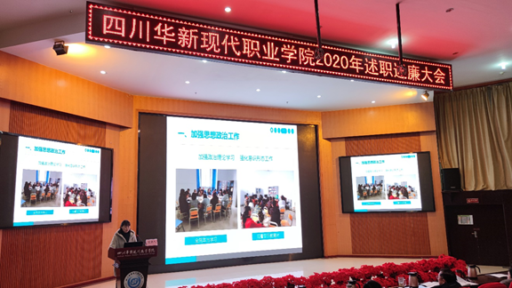 2020年12月28日,学院在学术报告厅召开2020年度述职述廉大会。学院院领导、四川开大组织部、处级干部、教职工代表等参加大会,大会由学院副院长康敏主持。