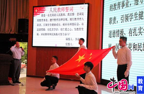 全体教师在四川华新现代职业学院党委书记李建川带领下宣誓;院长杨波向全院教职工致以节日的问候,并回顾了过去一学年学院取得的成绩。杨波表示,过去一年,全院教职工在学院党政的领导下,齐心协力、开拓进取,各项事业都取得了骄人的成绩,全校师生在省级以上专业技能竞赛中荣获多项大奖,李凡代表学校参加了全省青年教师教学竞赛决赛,获得文科组“优秀参赛奖”,曾瑞雪、黄彬彬在四川省高等职业院校教师教学能力大赛教学设计比赛中,荣获二等奖;移动商务、网络营销专业成功申报为国家骨干专业建设项目,《高职教育“双主体”人才培养体系建设改革试点》项目获批省级教育体制机制改革试点项目。