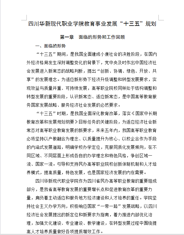 (C7-03)四川华新现代职业学院教育事业发展“十三五”规划