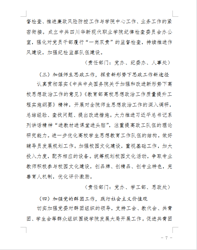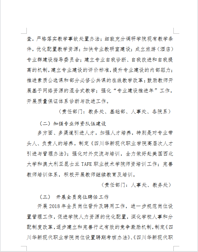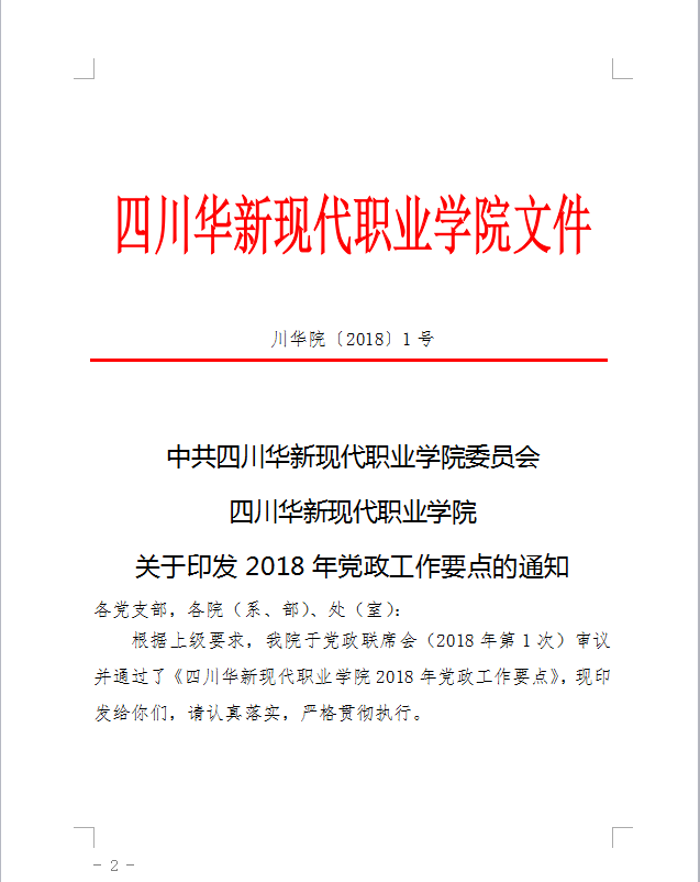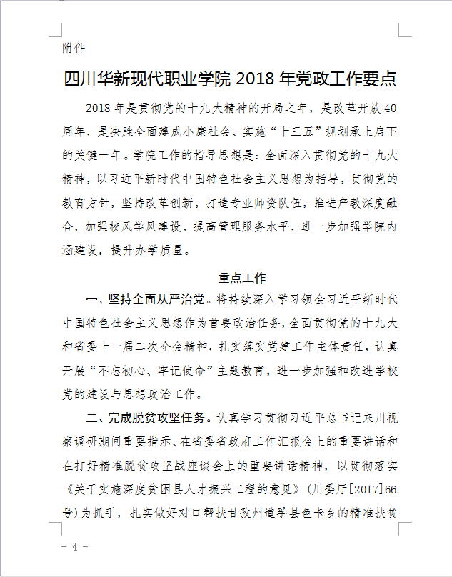 (C7-04)四川华新现代职业学院2018年党政工作要点