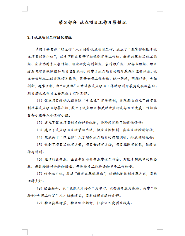 (G5-32)高职教育“双主体”人才培养体系建设试点项目自查自评报告