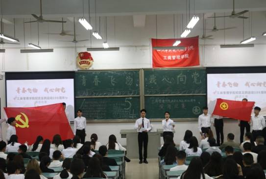 为纪念五·四运动100周年,弘扬“爱国、进步、民主、科学”的五·四精神,引导广大青年向善向上、奉献青春。55日中午,工商管理学院党支部在明德楼112室开展了“纪念五·四运动100周年”宣誓主题党日活动暨“青春飞扬,我心向党”演讲比赛。工商管理学院党支部书记刘依灵、全体党员、入党积极分子以及团支部200余名团员参加了此次活动。