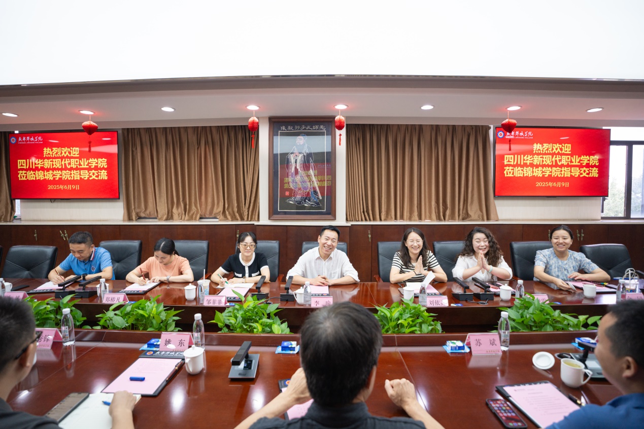 最后,两校在和平大楼会议室座谈交流,成都锦城学院相关部门负责人详细介绍了筹办校庆庆祝大会、校友行业大会、文艺晚会的具体做法和成功经验。李瑜副书记表示,锦城学院的校庆、校友会工作细致入微、成果显著,让人印象深刻,为华新职院提供了宝贵经验,值得华新职院不断追赶学习。今后,希望两校继续在人才培养、校友工作、就业创业等方面深化合作和交流。