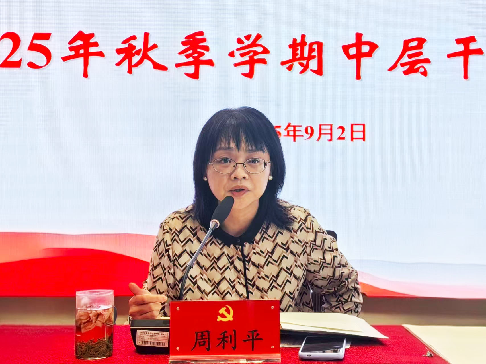 围绕下半年工作重点,周利平书记向全体中层干部提出三点要求:一是讲政治,要始终把政治建设摆在首位,深刻把握学院发展的政治方向,将思想和行动统一到学院决策部署上来,以高度的政治自觉推动各项工作;二是讲担当,要主动扛起岗位职责,面对发展任务敢于攻坚、面对困难挑战善于破局,以务实作风和有力举措确保新学期目标任务顺利完成;三是讲纪律,要严格遵守廉洁自律各项规定,强化纪律意识和规矩意识,营造风清气正的干事创业环境,为学院高质量发展提供坚强纪律保障。她强调,2025年是学院改革发展的关键之年,全院上下要统一思想凝聚共识、开拓创新,助力学院高质量发展。