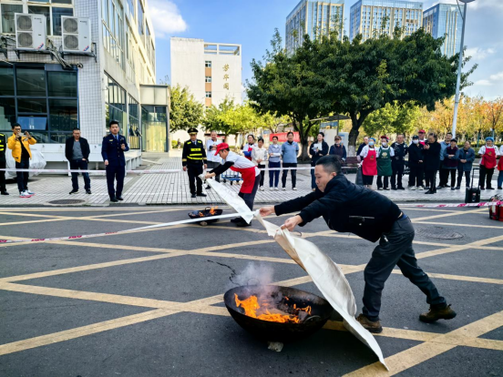 讲座结束后,在马教官指导下,现场所有员工进行了用灭火毯扑灭油锅起火的实操演练,参加本次活动的员工纷纷表示,活动内容丰富,针对性强,实效性强,引导作用明显,受益匪浅。