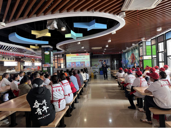 随后在讲座中,马教官结合自己灭火救援工作经验,以食堂火灾事件为开篇,向员工们讲解了食堂常见的消防安全隐患、常见的失火原因、燃气泄漏、油锅起火正确的处置方法以及如何做好火灾的预防等知识,并与现场员工互动,演示如何正确使用灭火器及消火栓,教育引导食堂员工关注消防、珍爱生命。