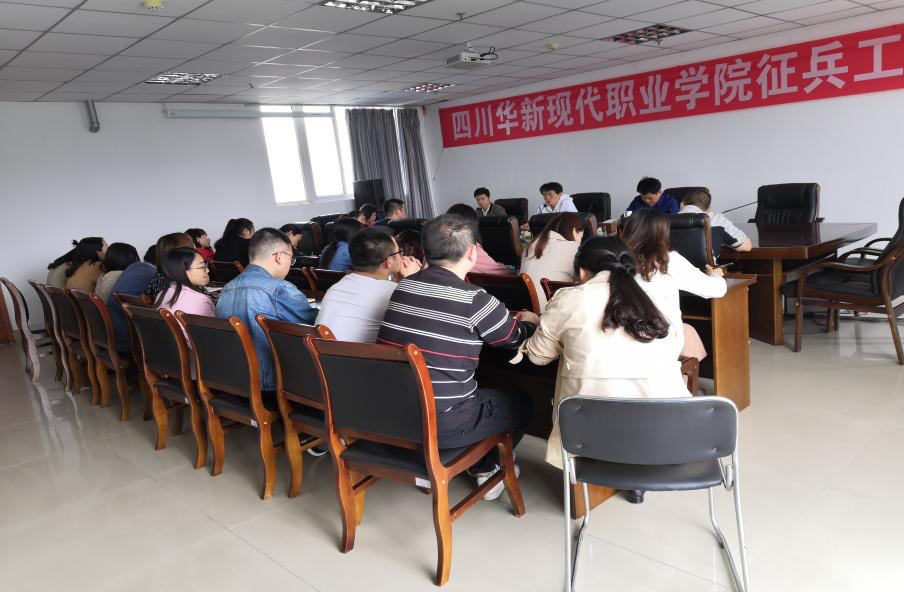 会上,刘副处长就我院2019年征兵工作基本情况、征兵任务数及我院征兵宣传的相关举措做了详细介绍。为提升征兵宣传效果,保卫处特意组建了征兵宣讲团,各班级在召开征兵动员主题班会时,可邀约宣讲团到现场协助讲解相关征兵政策,最大限度保障征兵宣传效果。而后刘伟老师传达了“2019年大学生征兵工作网络视频会议”精神,并通报了我院近几年的大学生参军入伍情况,现场解答辅导员关于学生征兵入伍优惠政策的各类疑问。最后,周院长强调了征兵工作的重要性,要求各二级学院全力推进征兵工作的宣传和开展,齐心协力做好今年的征兵工作,让更多的大学生在强军实践中担当爱国责任,确保圆满完成我院本年度的征兵工作。