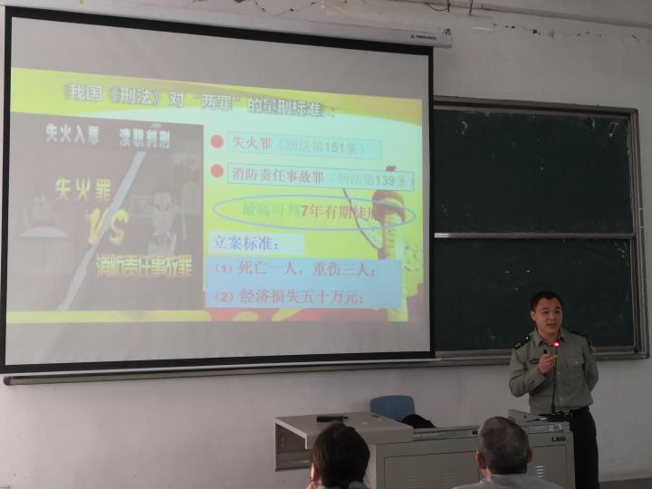 为进一步提高我院师生员工特别是相关岗位员工的消防安全知识,增强消防应急处理技能,4月19日下午,保卫处特邀成都市政消消防宣传中心谢尤川警官,在我院西河校区教学楼103教室,举行了消防安全知识讲座。各学院书记、食堂负责人、全体辅导员、宿管员、安保人员参加了此次讲座。