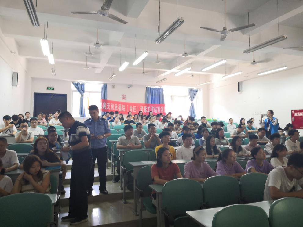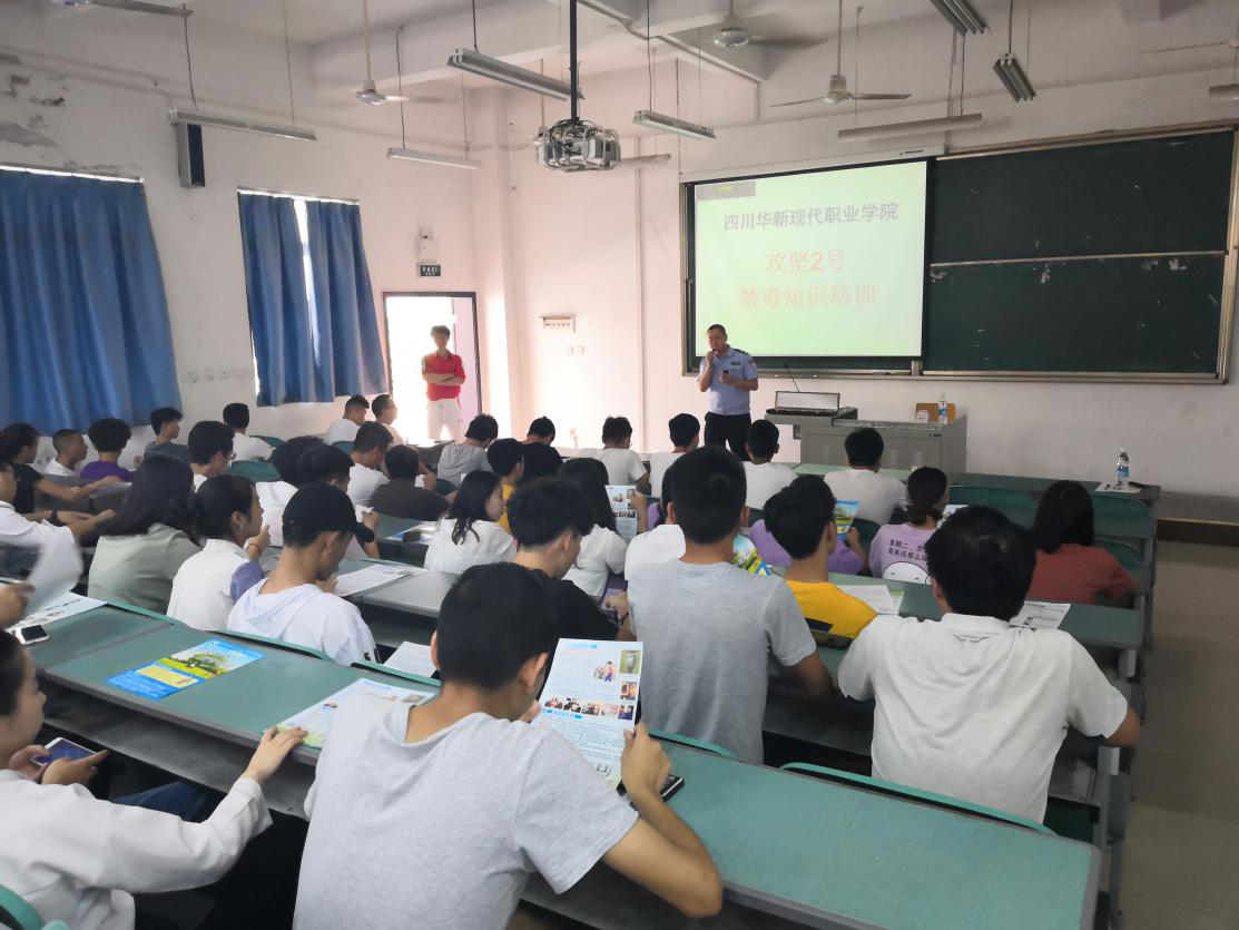 根据龙泉驿区禁毒办“攻坚2号”禁毒宣传行动的通知要求,为了让我校师生进一步了解毒品的危害,增强禁毒知识。6月6日下午,保卫处特邀西河派出所副所长董明及禁毒工作站社工,在我院西河校区教学楼103教室,举行了禁毒知识讲座。各学院学生代表参加了此次讲座。