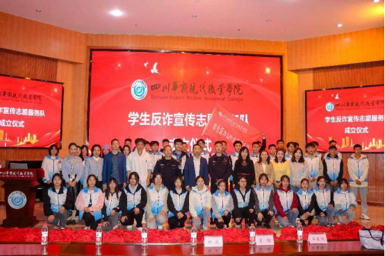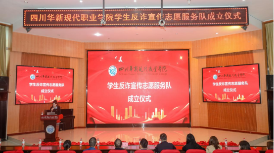为加强防范电信网络诈骗宣传,充分发挥高校学生在防范电信网络诈骗宣传工作中的主观能动性,提升高校师生防骗、识骗能力。10月26日,四川华新现代职业学院学生反诈宣传志愿服务队成立仪式在学术报告厅隆重举行。党委副书记李瑜、龙泉驿区西河派出所教导员王春晖、副所长陈武、学校有关处室负责人及二级学院书记、辅导员、学生反诈志愿服务队全体成员和近300名学生代表参加。
