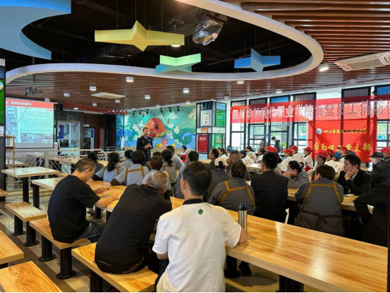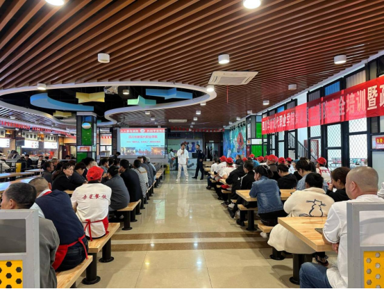 讲座中,利民消防中心范教官结合自己灭火救援工作经验,以学校食堂火灾案例为开篇,向师生讲解了常见的食堂消防安全隐患、常见的食堂失火原因、火灾给师生带来的生命财产安全危害以及如何做好火灾的预防等食堂防火须知内容,并就消防器材的使用、如何扑救初起火灾和火场自救逃生等消防知识做了重点介绍,教育引导食堂员工关注消防、珍爱生命。