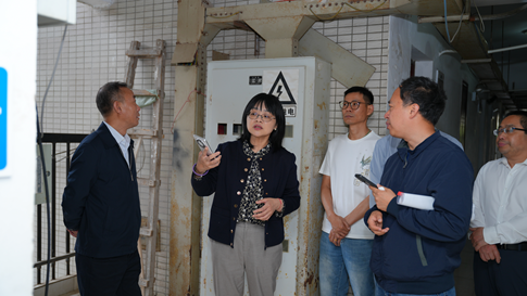 在学生公寓,检查组逐层查看消防通道畅通情况、用电安全及值班记录。周利平随机推开一间宿舍门,与学生亲切交谈,询问假期安排,并对坚守岗位的宿管员送上慰问,对她们“365天×24小时”的贴心服务表示感谢,并叮嘱“严格落实夜间巡查制度,重点关注留校学生动向,用‘妈妈式’关怀织密学生安全网”。周利平对宿舍网线捆绑缠绕等布设问题提出整改意见,要求图书信息中心及相关部门规范网线布局,为学生住宿安全提供保障。