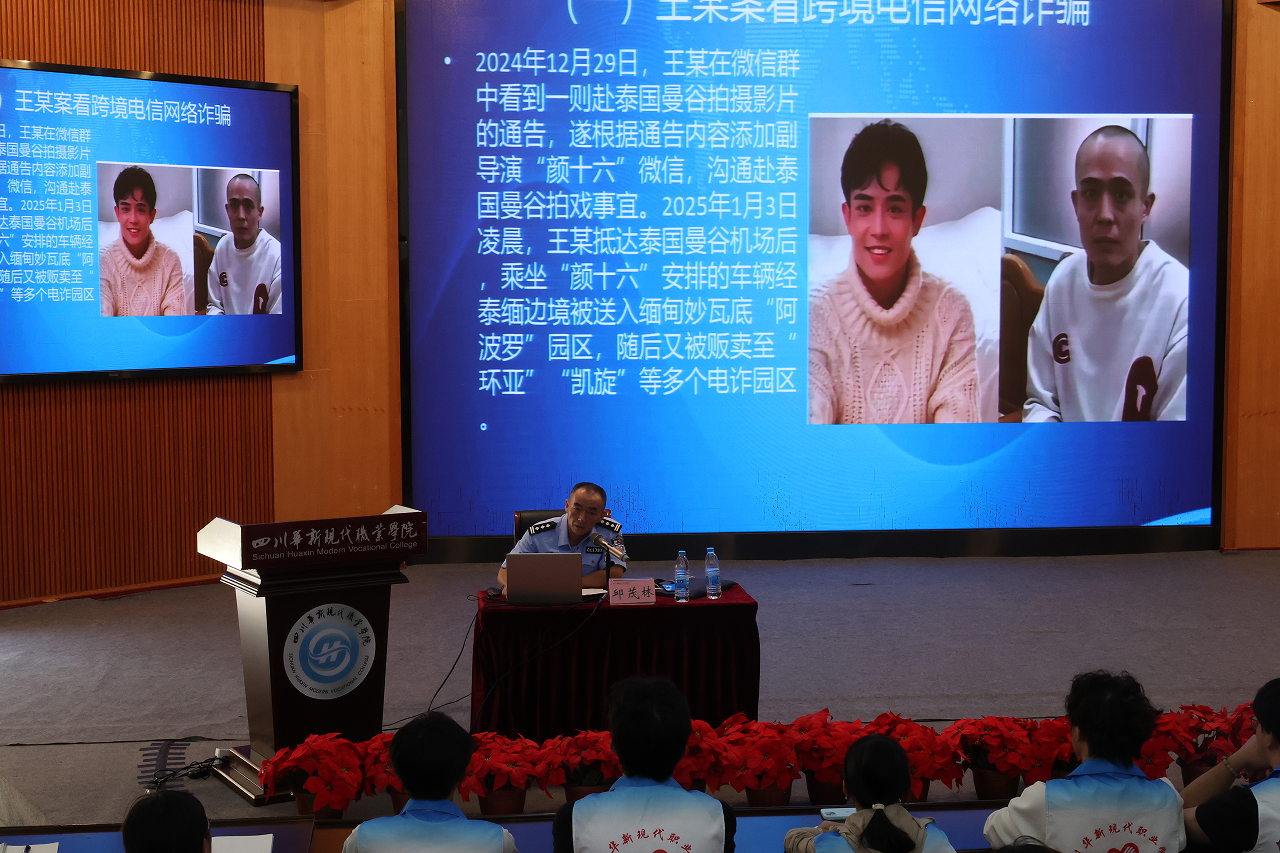 学生防范电信网络诈骗的意识与能力,筑牢校园安全防护屏障,9月25日上午10时,华新职院在学术报告厅开展 “学生反诈先锋” 专项培训。本次培训特别邀请成都市龙泉驿区
