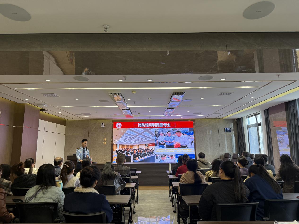 培训伊始,刘教官围绕消防安全核心要点展开讲解。在消防安全专题环节,他重点阐释办公室违规用电隐患识别方法,引导参训人员掌握自排自查技能;深入解读消防安全责任制,明确各岗位消防职责,推动 “全民消防,人人有责” 理念落地;通过剖析典型火灾案例并组织观看警示片,以真实场景强化安全警示效果;详细讲解火灾报警、初期火情控制等应急处置流程,确保参训人员明晰关键操作步骤;视频演示灭火器、防烟面罩、消防栓等器材的正确使用方法,现场开展海姆立克急救法专题教学,组织参训人员上台参与实操互动,切实提升其应急救护实操能力。