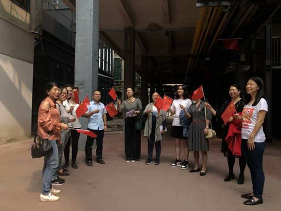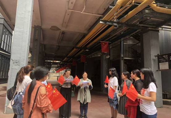在新中国成立70周年之际,通过参观东郊记忆,上世纪五十年代国企老工厂,让所有党员老师们在追忆往昔岁月的过程中,感悟今朝国家巨变,激发大家更加热爱祖国,珍惜今天的幸福生活。首先,在党支部副书记杨咏艳和李佳琪老师的带领下,诵读《我的祖国》,所有党员老师合唱《我和我的祖国》,共同祝福祖国永远朝气蓬勃。随后,老师们自行参观园区,与国旗合影,表达庆祝祖国七十华诞的喜悦心情。