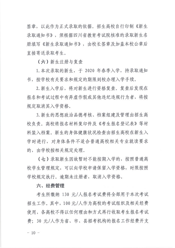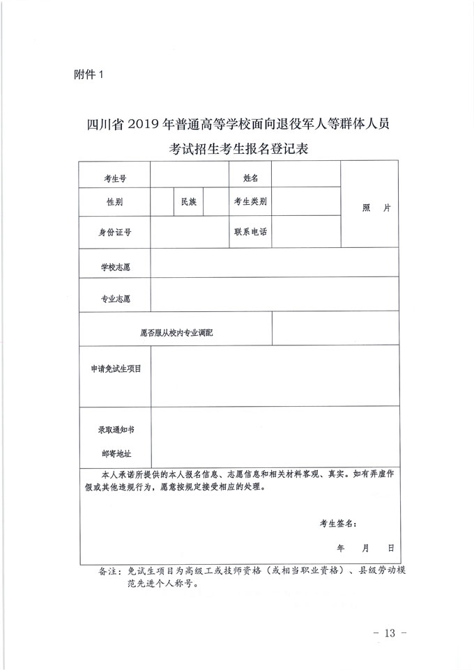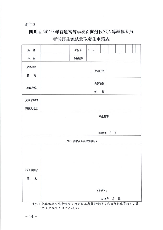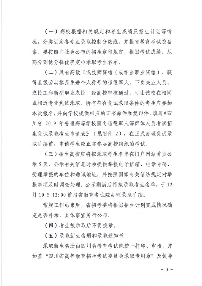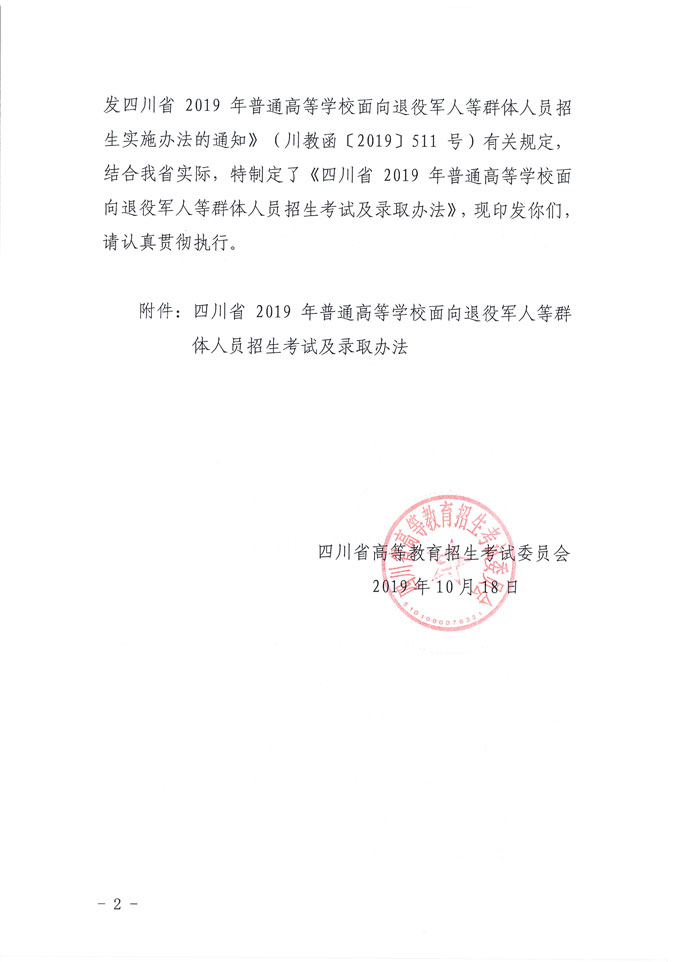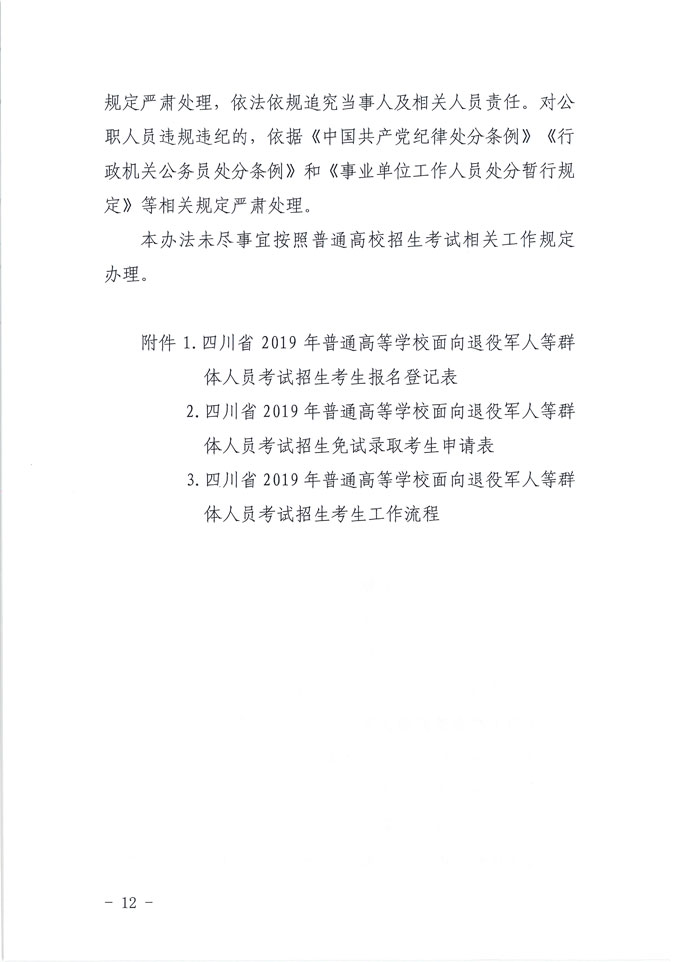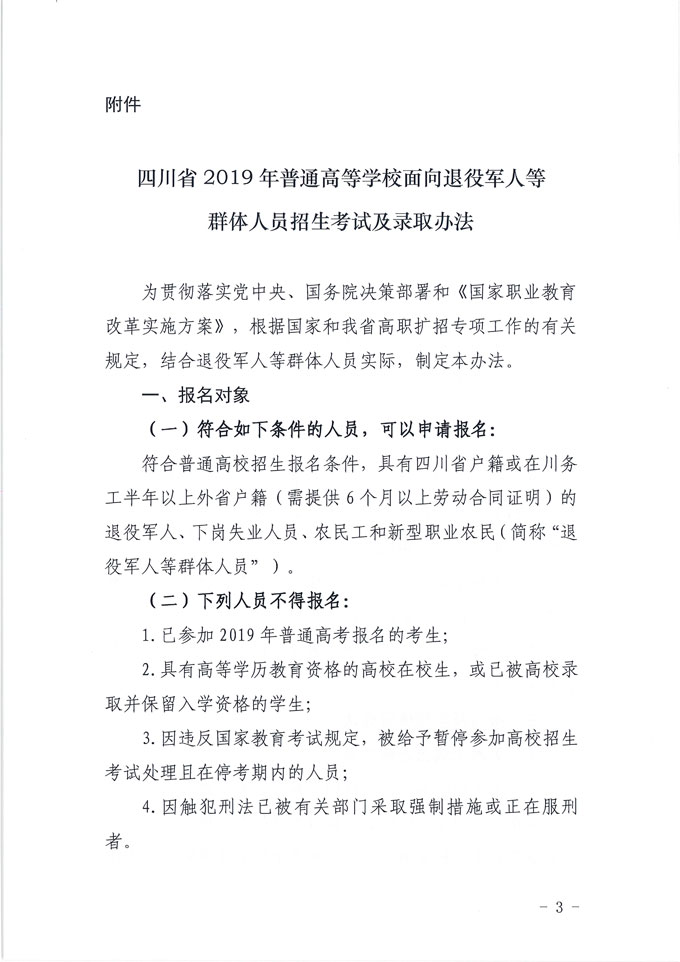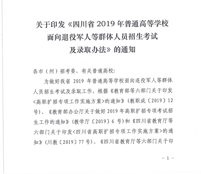 关于印发《四川省2019年普通高等学校面向退役军人等群体人员招生考试及录取办法》的通知