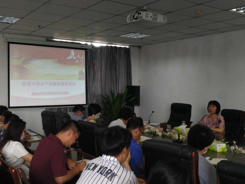 2020年7月9日下午2时,学院纪委在西河校区6楼会议室组织召开了纪委负责人同新晋升职务的党员领导干部集体廉政教育谈话会。谈话人是学院纪委书记邓忠,被谈话人是今年5月份新晋升职务的18位处级干部以及去年因故未参加谈话的新晋科级干部。