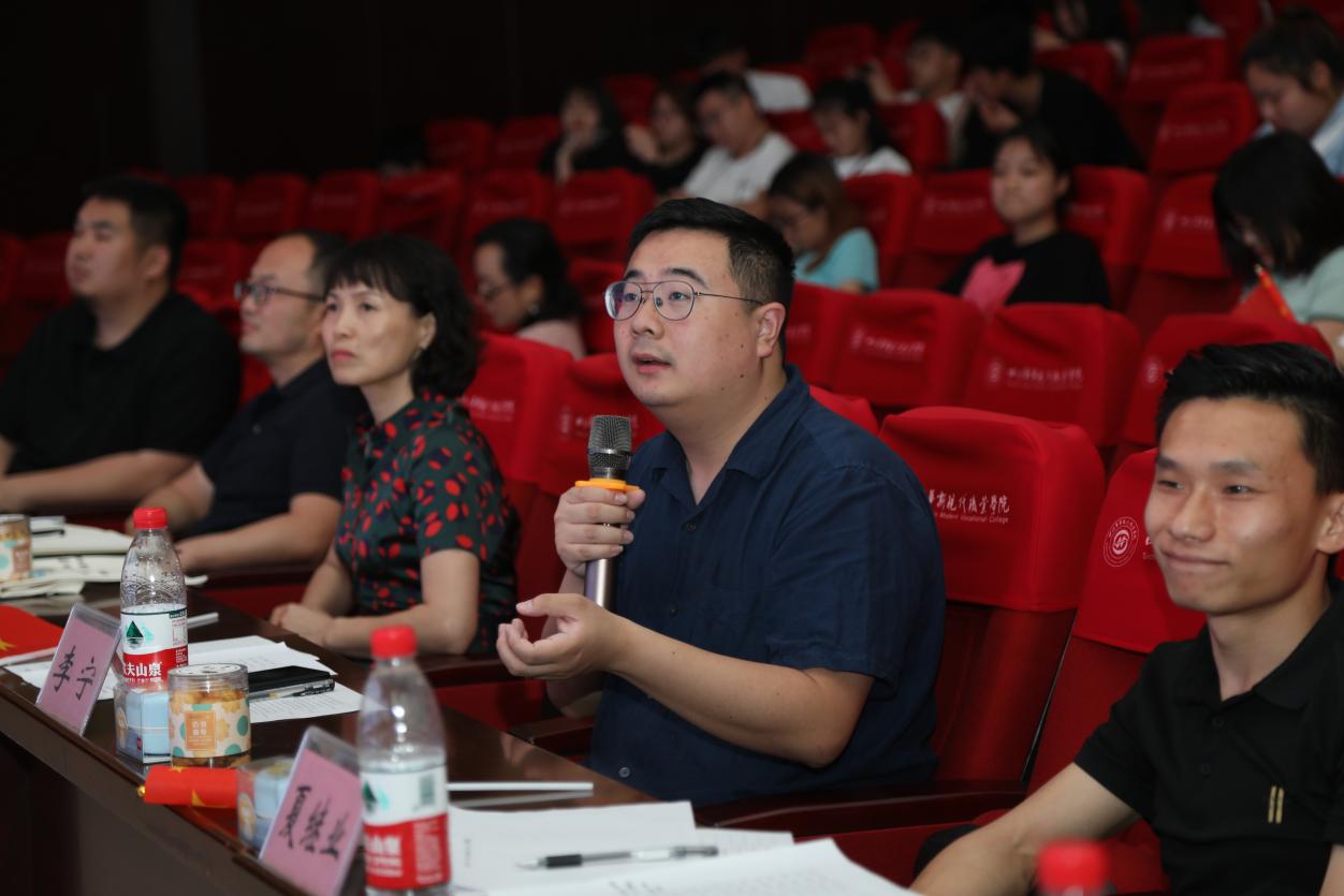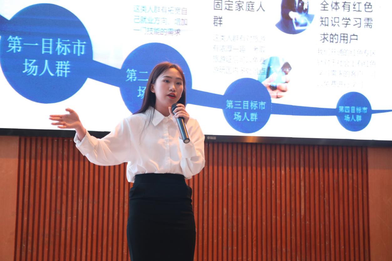 2021年是中国共产党成立100周年,百年征程波澜壮阔,百年初心历久弥坚,活动开始前,全体人员手举小红旗,合唱《没有共产党就没有新中国》,用歌声抒发对中国共产党的祝福和热爱。活动正式开始后,学院副院长谭征介绍了2021年学院互联网+创新创业大赛的开展情况,肯定了老师们、同学们在前期做出的努力,预祝学院校赛决赛圆满成功,并在后续的省赛和国赛中取得佳绩。接下来,各参赛团队通过路演分别从项目背景、产品介绍、核心技术、市场分析、团队情况、发展规划等方面对各自的项目进行了全面展示,现场各位评审专家对各项目逐一进行了提问,围绕项目创新性、团队情况、商业性、带动就业、引领教育等方面给予点评和建议。决赛团队作为屡破关卡、突破重围的佼佼者,他们展现出来的创新智慧、创新思维赢得了现场评委与观众的一致好评,充分展现了新时代大学生独有的青春魅力,专家评委精辟独到的点评更是将比赛推向了高潮。最后,观众评审团依次上台,为自己心仪的项目投上了自己神圣的一票。