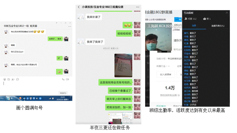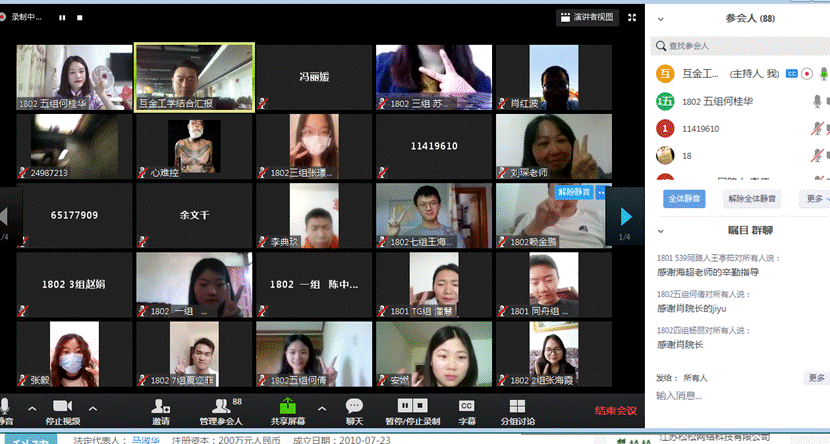 2020年5月10日上午10点,四川华新现代职业学院18级互联网金融专业举行了在线“开课吧python小课投放”项目答辩活动,至此,为期两个月的线上实训圆满结束。四川华新现代职业学院电商学院执行院长肖红波、互联网金融专业负责人刘琛、慧科集团新商科学院负责人余文千、新商科职教负责人冯丽媛、新商科工学结合专业主任王海超、慧科集团四川华新运营主任夏凯琪参加此次答辩。