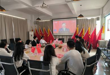 本次活动采用集中学习和个人自学的形式进行。16日早上,二十大开幕式开始前,支部书记陈丽玉便早早来到党支部活动室组织在校的党员们布置好集中观看的会场,营造了浓厚的学习氛围。陈丽玉书记同时要求在家的党员教师和在外实习的党员学生、入党积极分子按时观看二十大开幕式盛况。