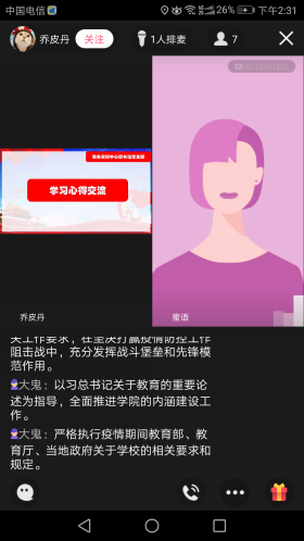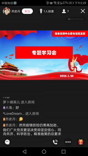 根据四川电大党委组织部《关于组织党员开展学习教育的通知》相关要求,教务处、图书馆的党员同志进行了自主学习,撰写了学习心得,并于2020年3月20日下午14:00-15:00利用QQ群课堂举行了在线学习交流会。
