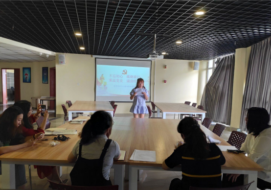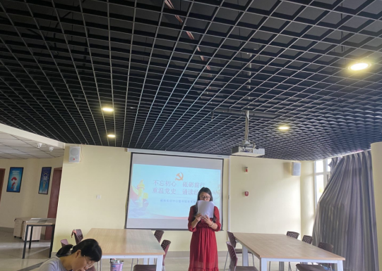 2021年5月13日中午,教务实训中心图书馆党支部在明德楼3楼大学生创业孵化园举行了“不忘初心砥砺前行 重温党史诵读经典”朗诵比赛。