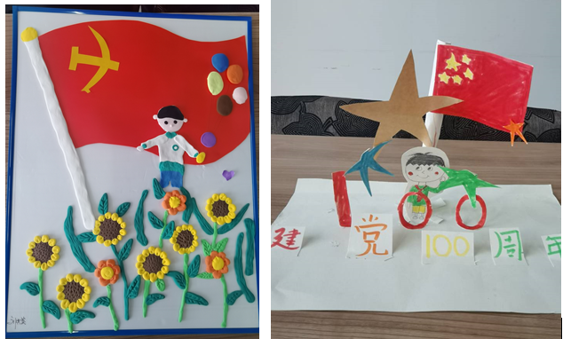 同志们声情并茂地介绍了作品主题、创作背景、相关的党史知识,如:有同志用超轻黏土和泡沫等材料制作了一件人民英雄纪念碑的模型;有同志用卡纸等材料制作了一副向中国共产党致敬的立体画;有同志画出了中国共产党在百年来带领中国人民取得的丰功伟绩;有同志用图画带领大家重温了中国共产党诞生的历史;有同志制作了天安门广场石头画;还有同志利用系列诗歌和绘画展示了中国共产党的孕育、成长、腾飞的历程。