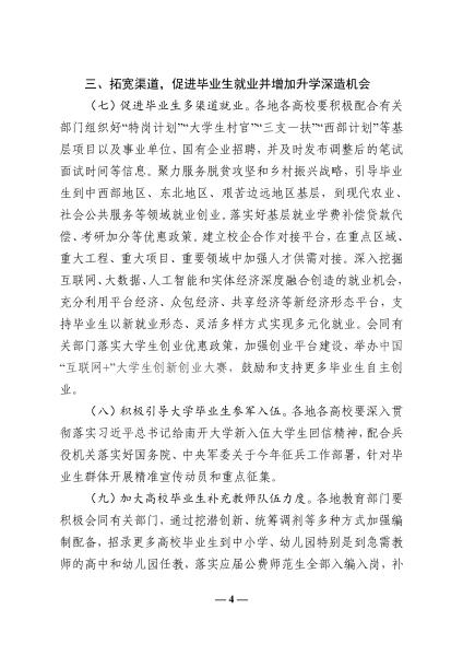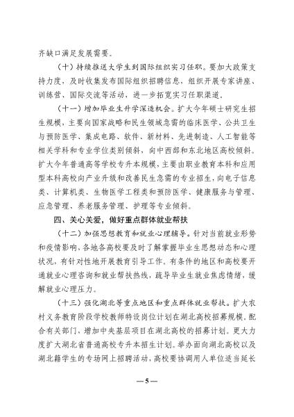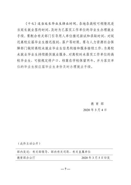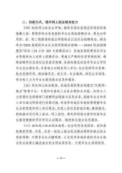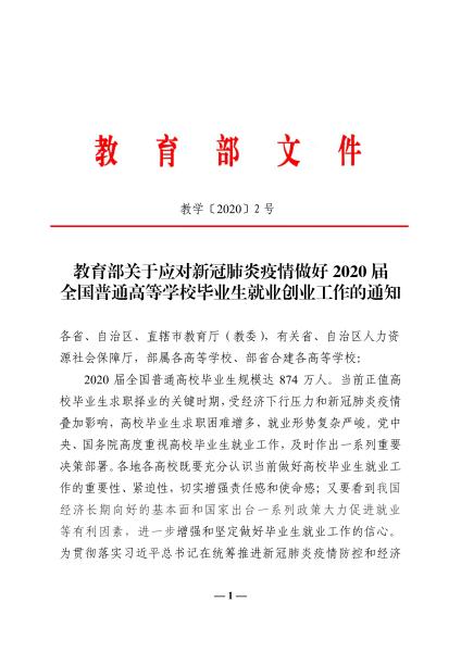 教育部关于应对新冠肺炎疫情做好 2020 届全国普通高等学校毕业生就业创业工作的通知