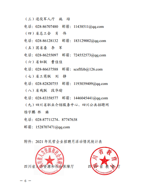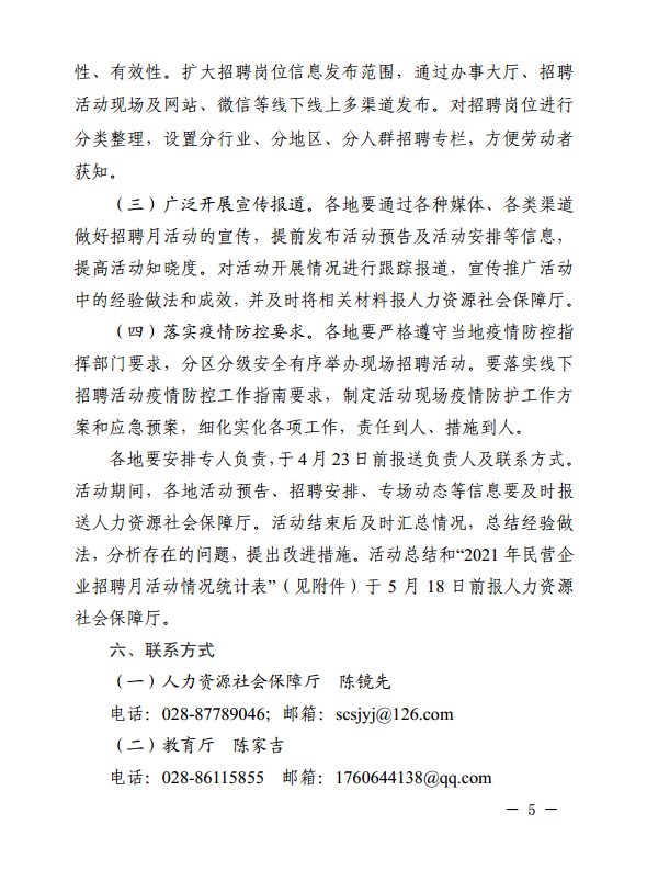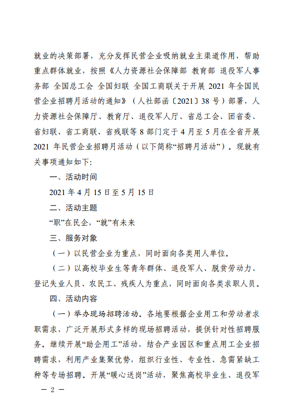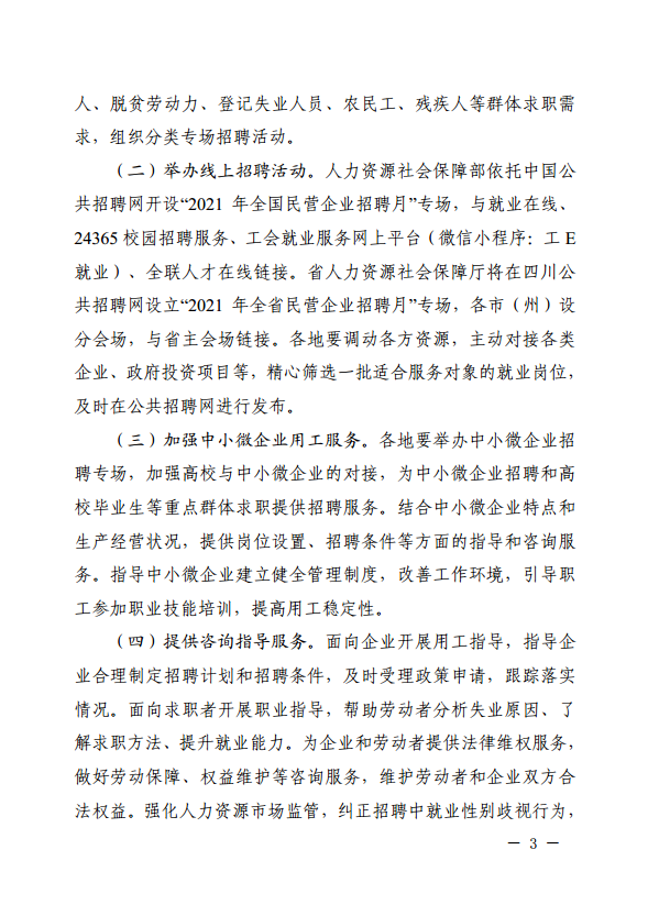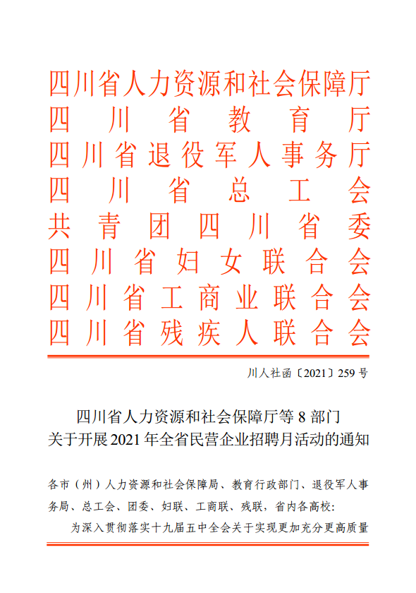 四川省人力资源和社会保障厅等8部门关于开展2021年全省民营企业招聘月活动的通知