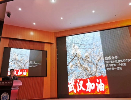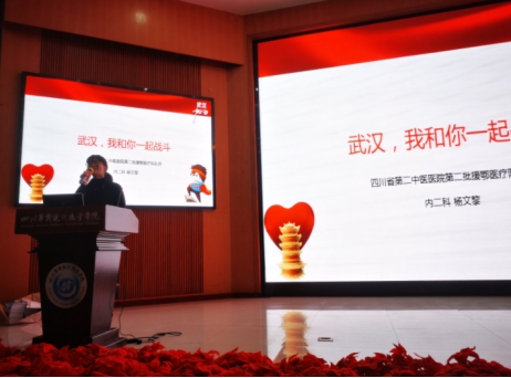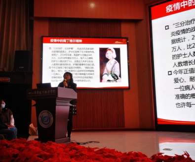 在新冠疫情面前,我们的白衣战士不畏生死,驰援湖北,逆风行、护平安,众志成城,同心抗疫,四川省第二中医医院的两名抗疫英雄,为新生们讲述了生动的抗疫故事,让我们的护理新生对自己的专业更多了一分自豪与敬畏。杨文黎以《武汉,我和你一起战斗》为题,详细介绍了省二中医院援鄂医疗队在武汉面对重重困难,毫不退缩,同英雄的武汉人民并肩作战,最终取得武汉战“疫”阶段性胜利的抗疫事迹,她们用实际行动展现了“共饮长江水、川鄂一家亲”的人间大爱。