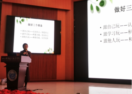 医护学院陈蒂丝副院长则以生动活泼的形式为新生们作了一场“接地气的”适应性教育,希望同学们在大学期间学会学习,学会提升自己,学会接纳同伴,在三年之后以良好的状态进入人生的新阶段。