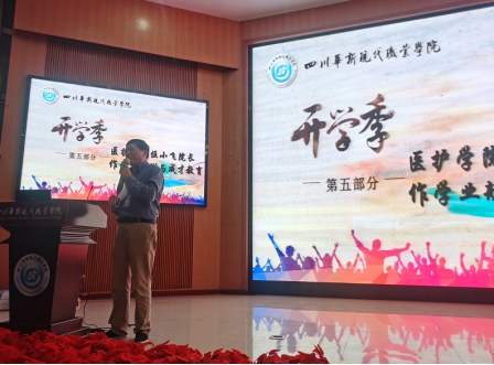 医护学院伍小飞院长希望同学们入校即树立目标,对标护士资格证考试,珍惜时间,成为合格的华新护理人。