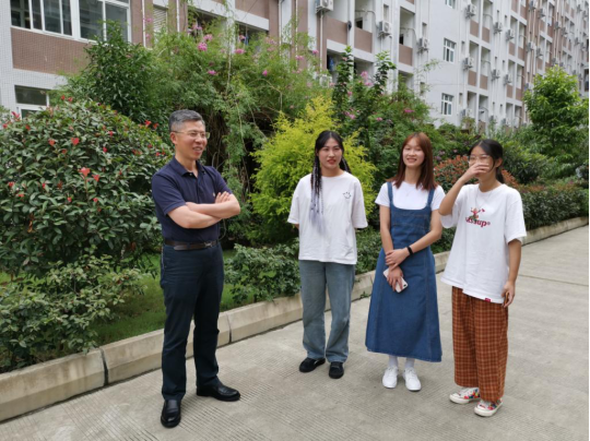 图4:谭文劲关心了解学生生活情况 调研座谈后,谭文劲一行又前往学生宿舍了解了集中供热、空调安装、直饮水和学生生活情况,对学院积极改善办学条件表示赞赏。 四川电大组织部部长叶立、教务处处长汪涛陪同开展督导调研。 |